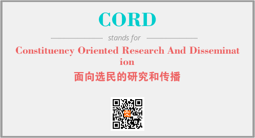 上述内容是“Constituency Oriented Research And Dissemination”作为“CORD”的缩写,解释为“面向选民的研究和传播”时的信息,以及英文缩略词CORD所代表的英文单词,其对应的中文拼音、详细解释以及在英文中的流行度和相关分类、应用领域及应用示例等。
