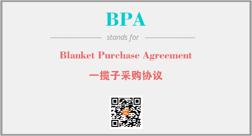 英文缩略词“BPA”经常作为“Blanket Purchase Agreement”的英文缩写来使用,中文表示:“一揽子采购协议”。本文将详细介绍英文缩写词BPA所代表英文单词,其对应的中文拼音、详细解释以及在英语中的流行度。此外,还有关于缩略词BPA的分类、应用领域及相关应用示例等。