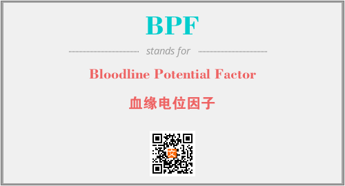 上述内容是“Bloodline Potential Factor”作为“BPF”的缩写,解释为“血缘电位因子”时的信息,以及英文缩略词BPF所代表的英文单词,其对应的中文拼音、详细解释以及在英文中的流行度和相关分类、应用领域及应用示例等。
