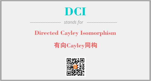 上述内容是“Directed Cayley Isomorphism”作为“DCI”的缩写,解释为“有向Cayley同构”时的信息,以及英文缩略词DCI所代表的英文单词,其对应的中文拼音、详细解释以及在英文中的流行度和相关分类、应用领域及应用示例等。