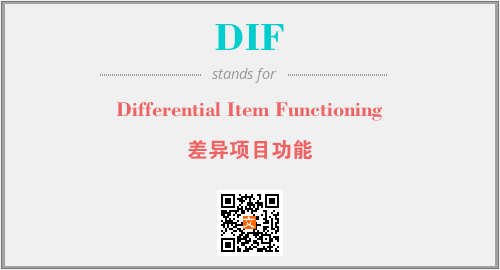 上述内容是“Differential Item Functioning”作为“DIF”的缩写,解释为“差异项目功能”时的信息,以及英文缩略词DIF所代表的英文单词,其对应的中文拼音、详细解释以及在英文中的流行度和相关分类、应用领域及应用示例等。