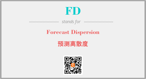 英文缩略词“FD”经常作为“Forecast Dispersion”的英文缩写来使用,中文表示:“预测离散度”。本文将详细介绍英文缩写词FD所代表英文单词,其对应的中文拼音、详细解释以及在英语中的流行度。此外,还有关于缩略词FD的分类、应用领域及相关应用示例等。