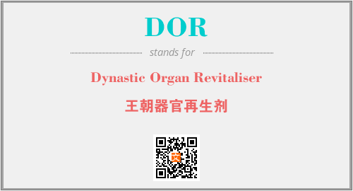 上述内容是“Dynastic Organ Revitaliser”作为“DOR”的缩写,解释为“王朝器官再生剂”时的信息,以及英文缩略词DOR所代表的英文单词,其对应的中文拼音、详细解释以及在英文中的流行度和相关分类、应用领域及应用示例等。