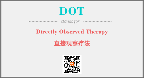英文缩略词“DOT”经常作为“Directly Observed Therapy”的英文缩写来使用,中文表示:“直接观察疗法”。本文将详细介绍英文缩写词DOT所代表英文单词,其对应的中文拼音、详细解释以及在英语中的流行度。此外,还有关于缩略词DOT的分类、应用领域及相关应用示例等。