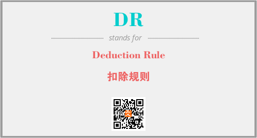 上述内容是“Deduction Rule”作为“DR”的缩写,解释为“扣除规则”时的信息,以及英文缩略词DR所代表的英文单词,其对应的中文拼音、详细解释以及在英文中的流行度和相关分类、应用领域及应用示例等。