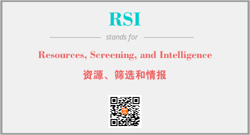 上述内容是“Resources, Screening, and Intelligence”作为“RSI”的缩写,解释为“资源、筛选和情报”时的信息,以及英文缩略词RSI所代表的英文单词,其对应的中文拼音、详细解释以及在英文中的流行度和相关分类、应用领域及应用示例等。