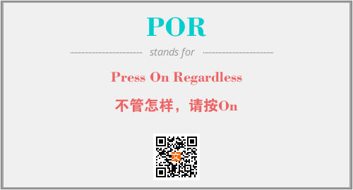 上述内容是“Press On Regardless”作为“POR”的缩写,解释为“不管怎样,请按On”时的信息,以及英文缩略词POR所代表的英文单词,其对应的中文拼音、详细解释以及在英文中的流行度和相关分类、应用领域及应用示例等。