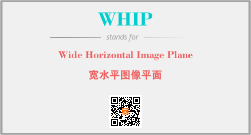 上述内容是“Wide Horizontal Image Plane”作为“WHIP”的缩写,解释为“宽水平图像平面”时的信息,以及英文缩略词WHIP所代表的英文单词,其对应的中文拼音、详细解释以及在英文中的流行度和相关分类、应用领域及应用示例等。
