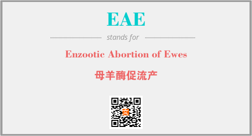 上述内容是“Enzootic Abortion of Ewes”作为“EAE”的缩写,解释为“母羊酶促流产”时的信息,以及英文缩略词EAE所代表的英文单词,其对应的中文拼音、详细解释以及在英文中的流行度和相关分类、应用领域及应用示例等。