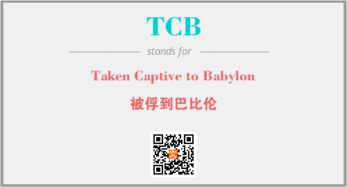上述内容是“Taken Captive to Babylon”作为“TCB”的缩写,解释为“被俘到巴比伦”时的信息,以及英文缩略词TCB所代表的英文单词,其对应的中文拼音、详细解释以及在英文中的流行度和相关分类、应用领域及应用示例等。