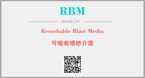 英文缩略词“RBM”经常作为“Resorbable Blast Media”的英文缩写来使用,中文表示:“可吸收喷砂介质”。本文将详细介绍英文缩写词RBM所代表英文单词,其对应的中文拼音、详细解释以及在英语中的流行度。此外,还有关于缩略词RBM的分类、应用领域及相关应用示例等。