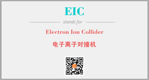 上述内容是“Electron Ion Collider”作为“EIC”的缩写,解释为“电子离子对撞机”时的信息,以及英文缩略词EIC所代表的英文单词,其对应的中文拼音、详细解释以及在英文中的流行度和相关分类、应用领域及应用示例等。