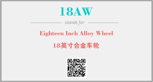 上述内容是“Eighteen Inch Alloy Wheel”作为“18AW”的缩写,解释为“18英寸合金车轮”时的信息,以及英文缩略词18AW所代表的英文单词,其对应的中文拼音、详细解释以及在英文中的流行度和相关分类、应用领域及应用示例等。