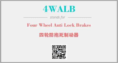 英文缩略词“4WALB”经常作为“Four Wheel Anti Lock Brakes”的英文缩写来使用,中文表示:“四轮防抱死制动器”。本文将详细介绍英文缩写词4WALB所代表英文单词,其对应的中文拼音、详细解释以及在英语中的流行度。此外,还有关于缩略词4WALB的分类、应用领域及相关应用示例等。