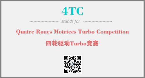 以上为Quatre Roues Motrices Turbo Competition英文缩略词4TC的中文解释,以及该英文缩写在英语的流行度、分类和应用领域方面的信息。