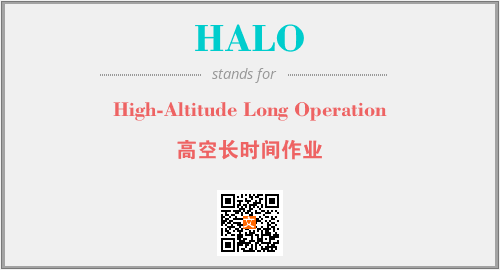 上述内容是“High-Altitude Long Operation”作为“HALO”的缩写,解释为“高空长时间作业”时的信息,以及英文缩略词HALO所代表的英文单词,其对应的中文拼音、详细解释以及在英文中的流行度和相关分类、应用领域及应用示例等。