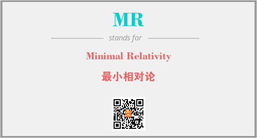 上述内容是“Minimal Relativity”作为“MR”的缩写,解释为“最小相对论”时的信息,以及英文缩略词MR所代表的英文单词,其对应的中文拼音、详细解释以及在英文中的流行度和相关分类、应用领域及应用示例等。