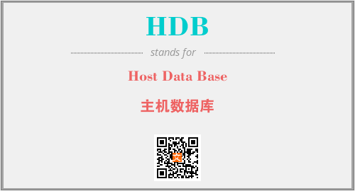 英文缩略词“HDB”经常作为“Host Data Base”的英文缩写来使用,中文表示:“主机数据库”。本文将详细介绍英文缩写词HDB所代表英文单词,其对应的中文拼音、详细解释以及在英语中的流行度。此外,还有关于缩略词HDB的分类、应用领域及相关应用示例等。