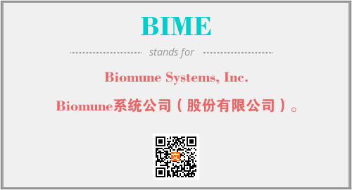 上述内容是“Biomune Systems, Inc.”作为“BIME”的缩写,解释为“Biomune系统公司(股份有限公司)。”时的信息,以及英文缩略词BIME所代表的英文单词,其对应的中文拼音、详细解释以及在英文中的流行度和相关分类、应用领域及应用示例等。