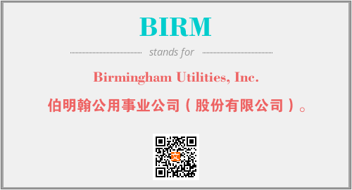 上述内容是“Birmingham Utilities, Inc.”作为“BIRM”的缩写,解释为“伯明翰公用事业公司(股份有限公司)。”时的信息,以及英文缩略词BIRM所代表的英文单词,其对应的中文拼音、详细解释以及在英文中的流行度和相关分类、应用领域及应用示例等。
