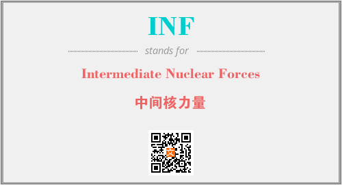 上述内容是“Intermediate Nuclear Forces”作为“INF”的缩写,解释为“中间核力量”时的信息,以及英文缩略词INF所代表的英文单词,其对应的中文拼音、详细解释以及在英文中的流行度和相关分类、应用领域及应用示例等。