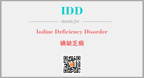 上述内容是“Iodine Deficiency Disorder”作为“IDD”的缩写,解释为“碘缺乏病”时的信息,以及英文缩略词IDD所代表的英文单词,其对应的中文拼音、详细解释以及在英文中的流行度和相关分类、应用领域及应用示例等。