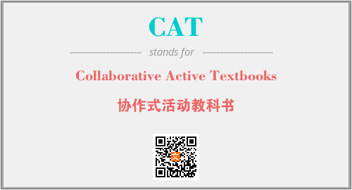 上述内容是“Collaborative Active Textbooks”作为“CAT”的缩写,解释为“协作式活动教科书”时的信息,以及英文缩略词CAT所代表的英文单词,其对应的中文拼音、详细解释以及在英文中的流行度和相关分类、应用领域及应用示例等。