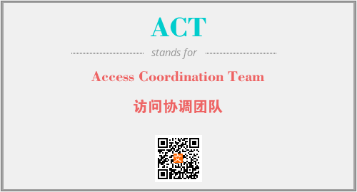 英文缩略词“ACT”经常作为“Access Coordination Team”的英文缩写来使用,中文表示:“访问协调团队”。本文将详细介绍英文缩写词ACT所代表英文单词,其对应的中文拼音、详细解释以及在英语中的流行度。此外,还有关于缩略词ACT的分类、应用领域及相关应用示例等。