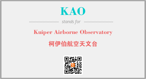 上述内容是“Kuiper Airborne Observatory”作为“KAO”的缩写,解释为“柯伊伯航空天文台”时的信息,以及英文缩略词KAO所代表的英文单词,其对应的中文拼音、详细解释以及在英文中的流行度和相关分类、应用领域及应用示例等。