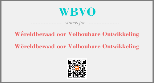 上述内容是“Wêreldberaad oor Volhoubare Ontwikkeling”作为“WBVO”的缩写,解释为“Wêreldberaad oor Volhoubare Ontwikkeling”时的信息,以及英文缩略词WBVO所代表的英文单词,其对应的中文拼音、详细解释以及在英文中的流行度和相关分类、应用领域及应用示例等。