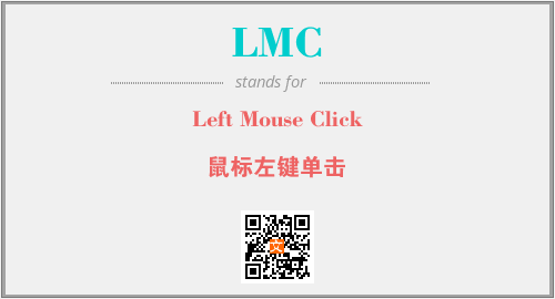 英文缩略词“LMC”经常作为“Left Mouse Click”的英文缩写来使用,中文表示:“鼠标左键单击”。本文将详细介绍英文缩写词LMC所代表英文单词,其对应的中文拼音、详细解释以及在英语中的流行度。此外,还有关于缩略词LMC的分类、应用领域及相关应用示例等。