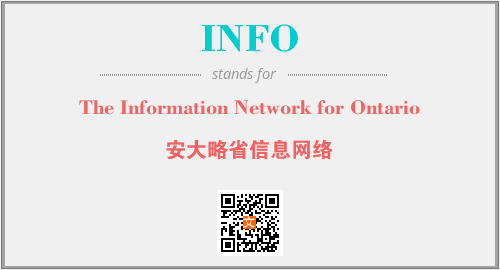 上述内容是“The Information Network for Ontario”作为“INFO”的缩写,解释为“安大略省信息网络”时的信息,以及英文缩略词INFO所代表的英文单词,其对应的中文拼音、详细解释以及在英文中的流行度和相关分类、应用领域及应用示例等。