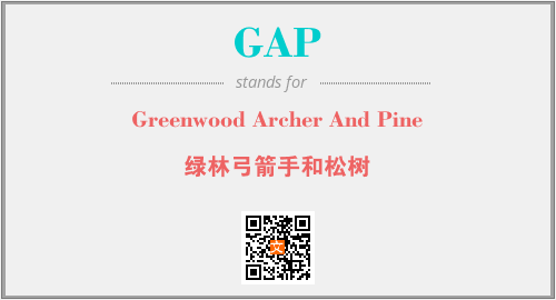 上述内容是“Greenwood Archer And Pine”作为“GAP”的缩写,解释为“绿林弓箭手和松树”时的信息,以及英文缩略词GAP所代表的英文单词,其对应的中文拼音、详细解释以及在英文中的流行度和相关分类、应用领域及应用示例等。