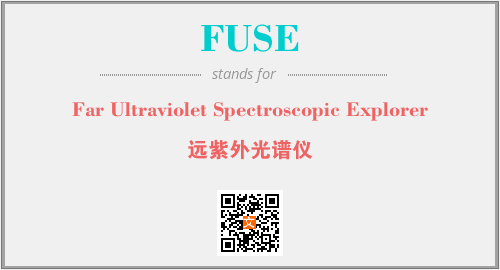 上述内容是“Far Ultraviolet Spectroscopic Explorer”作为“FUSE”的缩写,解释为“远紫外光谱仪”时的信息,以及英文缩略词FUSE所代表的英文单词,其对应的中文拼音、详细解释以及在英文中的流行度和相关分类、应用领域及应用示例等。
