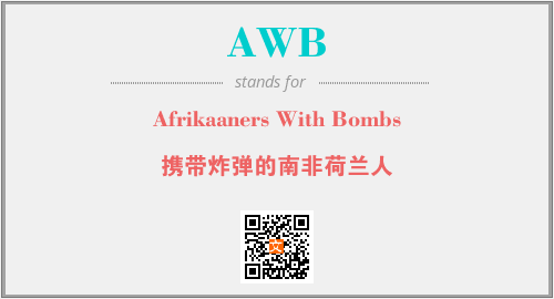 以上为Afrikaaners With Bombs英文缩略词AWB的中文解释,以及该英文缩写在英语的流行度、分类和应用领域方面的信息。
