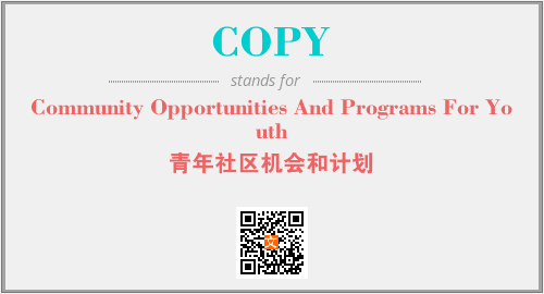 上述内容是“Community Opportunities And Programs For Youth”作为“COPY”的缩写,解释为“青年社区机会和计划”时的信息,以及英文缩略词COPY所代表的英文单词,其对应的中文拼音、详细解释以及在英文中的流行度和相关分类、应用领域及应用示例等。