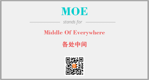 英文缩略词“MOE”经常作为“Middle Of Everywhere”的英文缩写来使用,中文表示:“各处中间”。本文将详细介绍英文缩写词MOE所代表英文单词,其对应的中文拼音、详细解释以及在英语中的流行度。此外,还有关于缩略词MOE的分类、应用领域及相关应用示例等。
