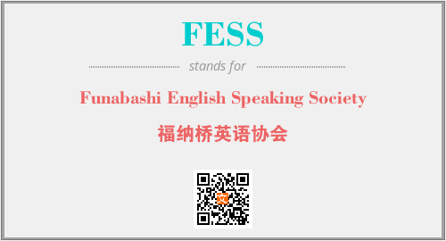 英文缩略词“FESS”经常作为“Funabashi English Speaking Society”的英文缩写来使用,中文表示:“福纳桥英语协会”。本文将详细介绍英文缩写词FESS所代表英文单词,其对应的中文拼音、详细解释以及在英语中的流行度。此外,还有关于缩略词FESS的分类、应用领域及相关应用示例等。