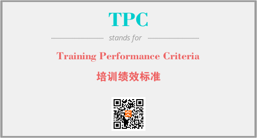英文缩略词“TPC”经常作为“Training Performance Criteria”的英文缩写来使用,中文表示:“培训绩效标准”。本文将详细介绍英文缩写词TPC所代表英文单词,其对应的中文拼音、详细解释以及在英语中的流行度。此外,还有关于缩略词TPC的分类、应用领域及相关应用示例等。