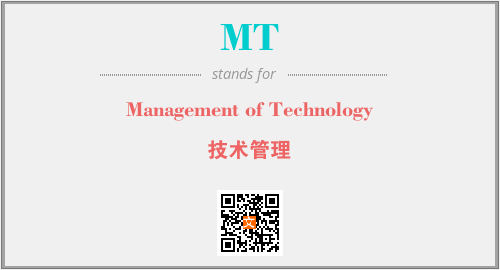 英文缩略词“MT”经常作为“Management of Technology”的英文缩写来使用,中文表示:“技术管理”。本文将详细介绍英文缩写词MT所代表英文单词,其对应的中文拼音、详细解释以及在英语中的流行度。此外,还有关于缩略词MT的分类、应用领域及相关应用示例等。