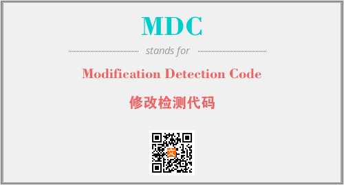 英文缩略词“MDC”经常作为“Modification Detection Code”的英文缩写来使用,中文表示:“修改检测代码”。本文将详细介绍英文缩写词MDC所代表英文单词,其对应的中文拼音、详细解释以及在英语中的流行度。此外,还有关于缩略词MDC的分类、应用领域及相关应用示例等。