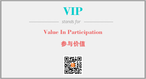 以上为Value In Participation英文缩略词VIP的中文解释,以及该英文缩写在英语的流行度、分类和应用领域方面的信息。