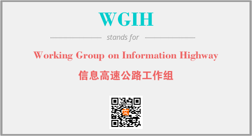上述内容是“Working Group on Information Highway”作为“WGIH”的缩写,解释为“信息高速公路工作组”时的信息,以及英文缩略词WGIH所代表的英文单词,其对应的中文拼音、详细解释以及在英文中的流行度和相关分类、应用领域及应用示例等。