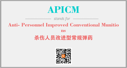 英文缩略词“APICM”经常作为“Anti- Personnel Improved Conventional Munitions”的英文缩写来使用,中文表示:“杀伤人员改进型常规弹药”。本文将详细介绍英文缩写词APICM所代表英文单词,其对应的中文拼音、详细解释以及在英语中的流行度。此外,还有关于缩略词APICM的分类、应用领域及相关应用示例等。