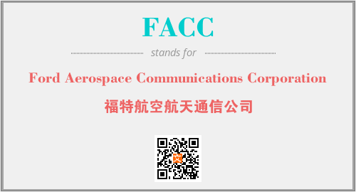 英文缩略词“FACC”经常作为“Ford Aerospace Communications Corporation”的英文缩写来使用,中文表示:“福特航空航天通信公司”。本文将详细介绍英文缩写词FACC所代表英文单词,其对应的中文拼音、详细解释以及在英语中的流行度。此外,还有关于缩略词FACC的分类、应用领域及相关应用示例等。