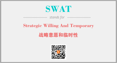 英文缩略词“SWAT”经常作为“Strategic Willing And Temporary”的英文缩写来使用,中文表示:“战略意愿和临时性”。本文将详细介绍英文缩写词SWAT所代表英文单词,其对应的中文拼音、详细解释以及在英语中的流行度。此外,还有关于缩略词SWAT的分类、应用领域及相关应用示例等。