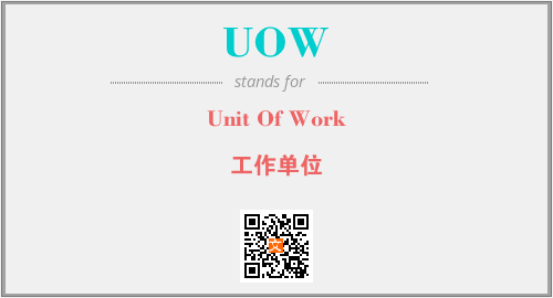 英文缩略词“UOW”经常作为“Unit Of Work”的英文缩写来使用,中文表示:“工作单位”。本文将详细介绍英文缩写词UOW所代表英文单词,其对应的中文拼音、详细解释以及在英语中的流行度。此外,还有关于缩略词UOW的分类、应用领域及相关应用示例等。