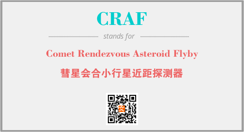 上述内容是“Comet Rendezvous Asteroid Flyby”作为“CRAF”的缩写,解释为“彗星会合小行星近距探测器”时的信息,以及英文缩略词CRAF所代表的英文单词,其对应的中文拼音、详细解释以及在英文中的流行度和相关分类、应用领域及应用示例等。
