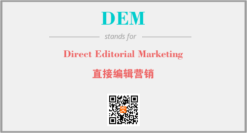 英文缩略词“DEM”经常作为“Direct Editorial Marketing”的英文缩写来使用,中文表示:“直接编辑营销”。本文将详细介绍英文缩写词DEM所代表英文单词,其对应的中文拼音、详细解释以及在英语中的流行度。此外,还有关于缩略词DEM的分类、应用领域及相关应用示例等。
