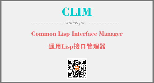 上述内容是“Common Lisp Interface Manager”作为“CLIM”的缩写,解释为“通用Lisp接口管理器”时的信息,以及英文缩略词CLIM所代表的英文单词,其对应的中文拼音、详细解释以及在英文中的流行度和相关分类、应用领域及应用示例等。